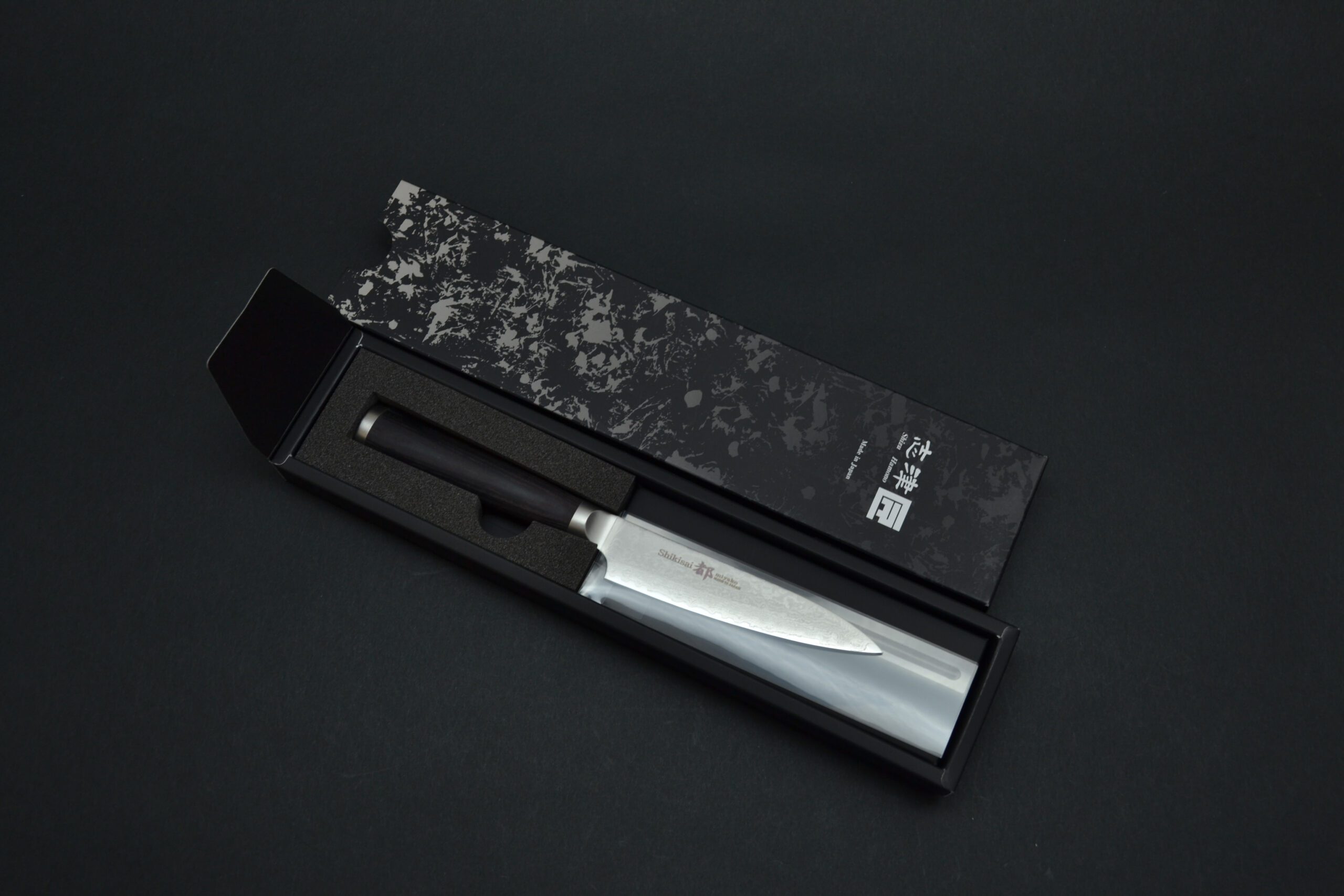 Developed to embody the essential functions and beauty of knives this series has all the beauty of classical Japanese knives. Made of AUS-8 stainless steel in its core, cladded with softer SUS1A-1 stainless steel